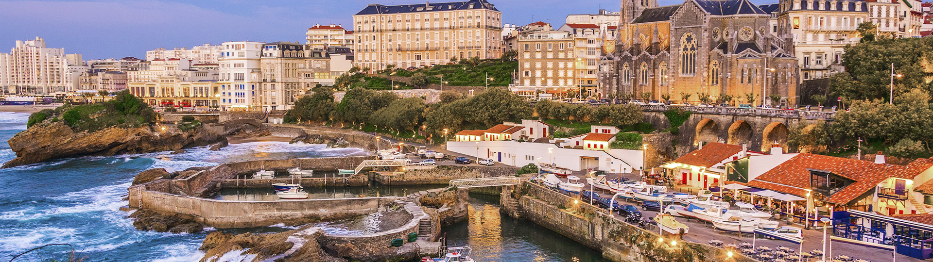 Biarritz is a city in southwestern France, on the Bay of Biscay: luxury seaside tourist destination.